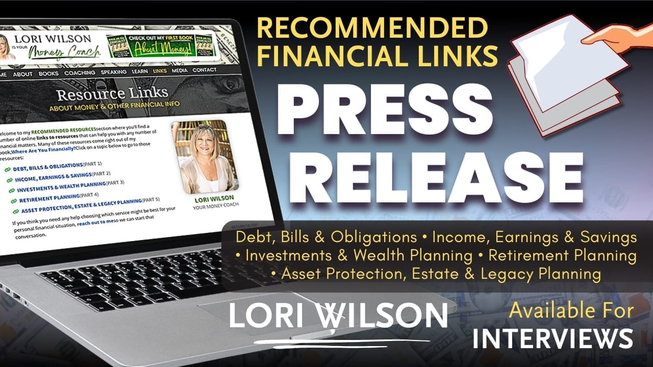 [Escondido, CA] — Lori Wilson, author of three influential books on money and personal finance and founder of the financial education platform LoriMoneyCoach.com, is excited to announce the launch of her Recommended Financial Resource Links directory — a comprehensive, curated collection of online tools and educational sites designed to help people make smarter financial decisions. The directory highlights trusted external resources connected to key money topics from Wilson’s work, including debt & bills, income & savings, investing & wealth planning, retirement planning, and asset protection & legacy planning — helping individuals and families access expert-vetted information in one convenient online hub.